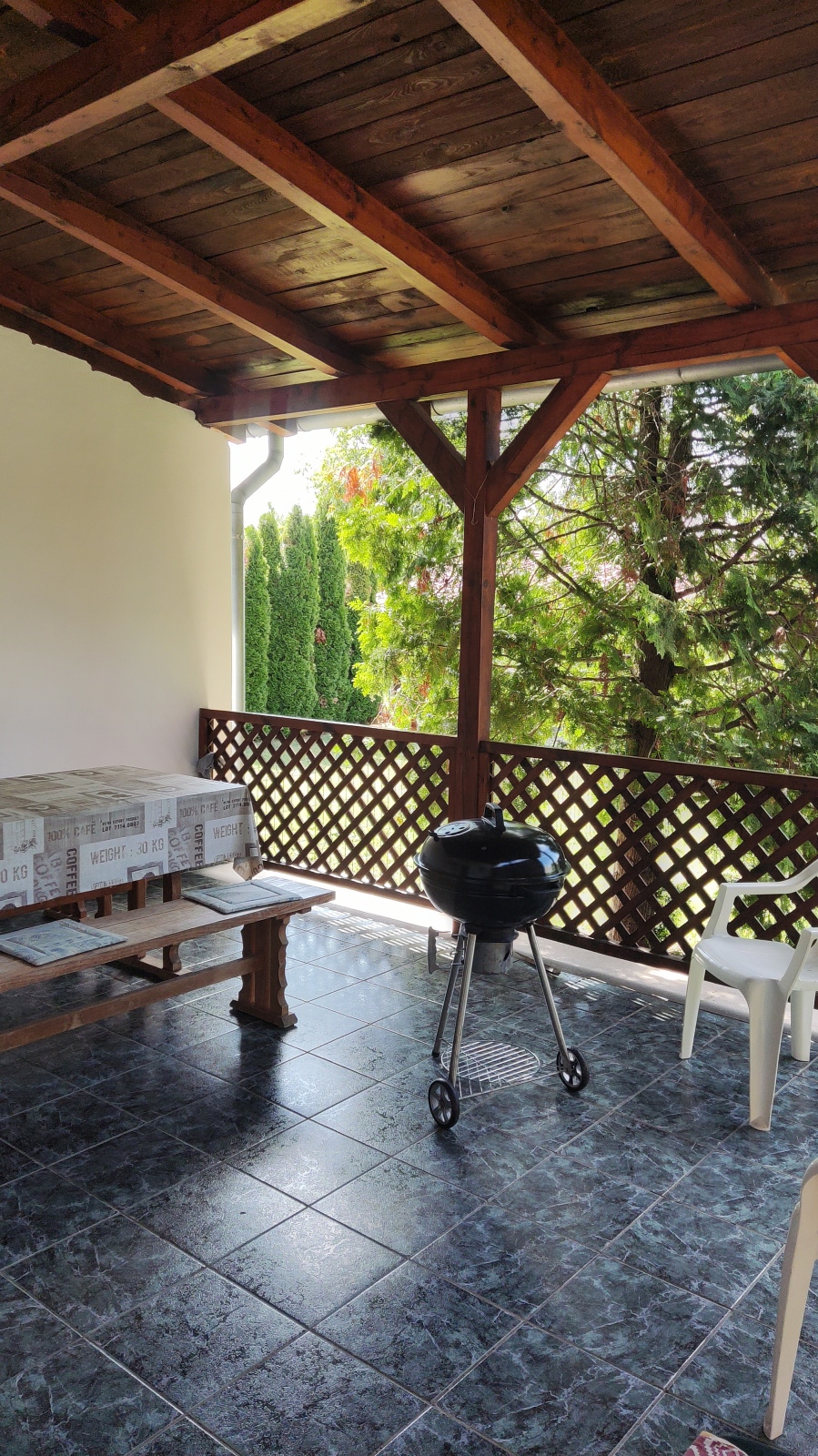 A kertben lehet bográcsozni, grillezni.